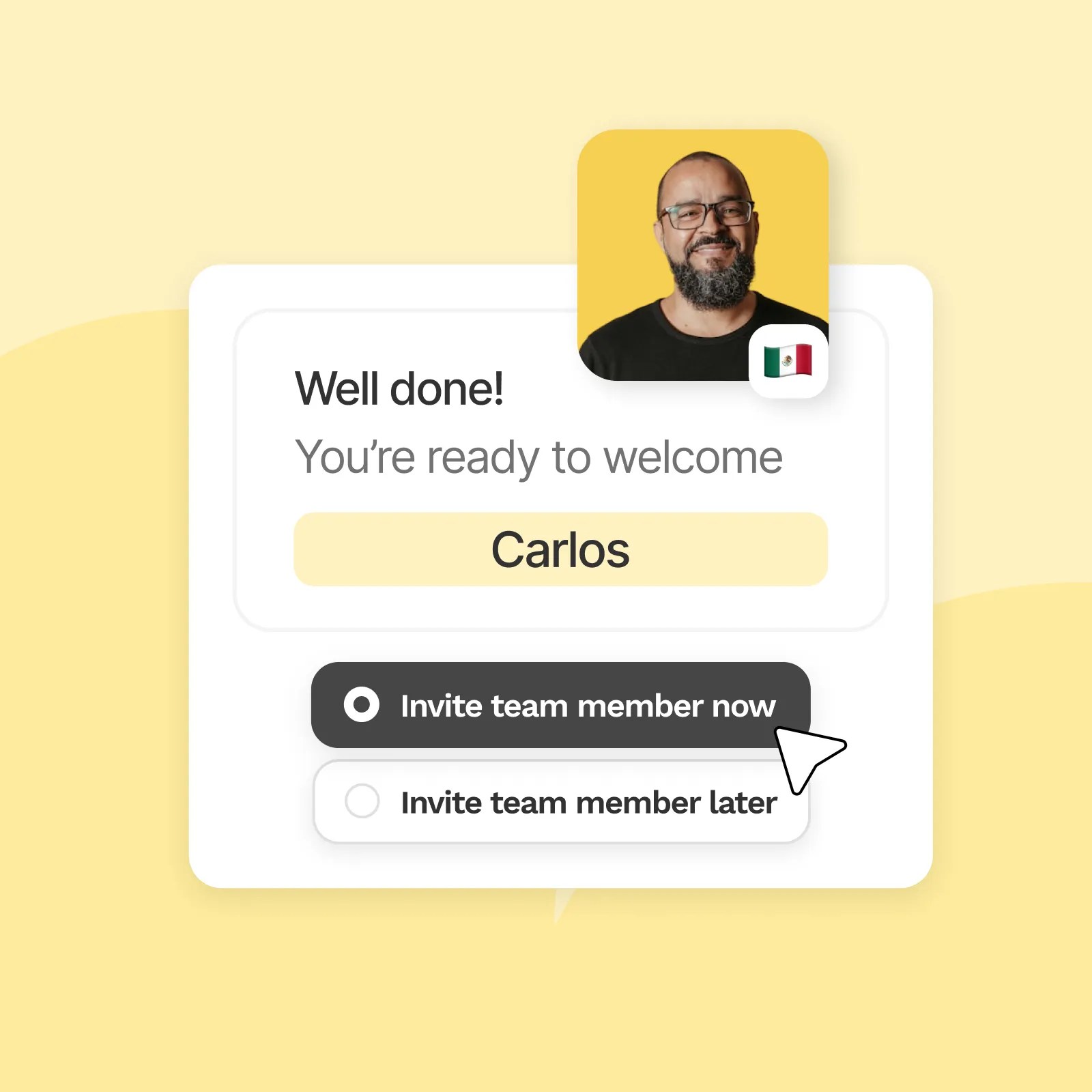 - Guided hiring flows: Follow an easy step-by-step process to hire Team Members compliantly.